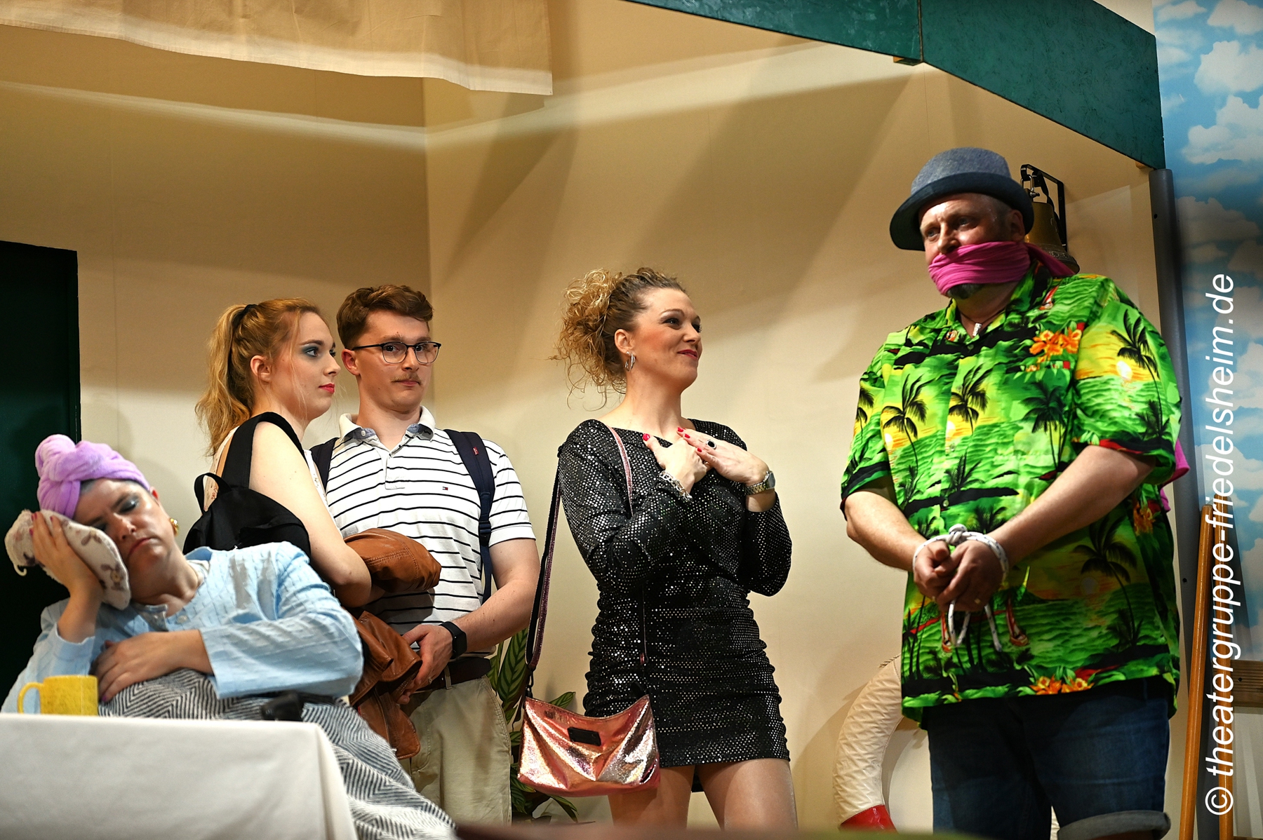 Als wäre dies nicht Chaos genug, erscheinen noch der zur Liebesnacht bestellte Fitness-Trainer und zwei einfach gestrickte Ganoven, die Huberts dominante Mutter Wilma entführen sollen, aber stattdessen gleich die ganze Yacht rauben. Doch am Ende dieser turbulenten Nacht wird sich zeigen, dass nichts so ist, wie es scheint…